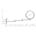 Miroir cosmetique grossissant x 1 et x 5 mural, chrome poli, trois bras, pivotant