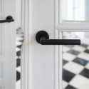 La poignée de porte Louise noire à rosace ronde à ressort offre une élégance sobre à toute porte intérieure. Sa finition mate confère une sophistication discrète à chaque pièce, tandis que la forme ronde de la rosace lui confère une esthétique contemporaine qui s'harmonise avec tous les décors.