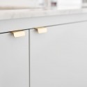 Poignée sur chant Patina de Furnipart en laiton brut non verni, à patine naturelle. Disponible en 45 mm et 120 mm. Design discret et élégant.