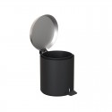 Poubelle ronde à pédale avec couvercle soft-close et récipient intérieur, noir et inox brossé