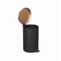 Poubelle ronde à pédale avec couvercle soft-close et récipient intérieur, noir et cuivre