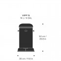 La poubelle à pédale Vipp 15 offre un excellent rapport qualité-prix pour sa grande capacité. De plus, vous bénéficiez d'une garantie de 10 ans pour toutes les poubelles à pédale achetées après 2008, tandis que celles achetées avant 2008 bénéficient d'une garantie de deux ans.